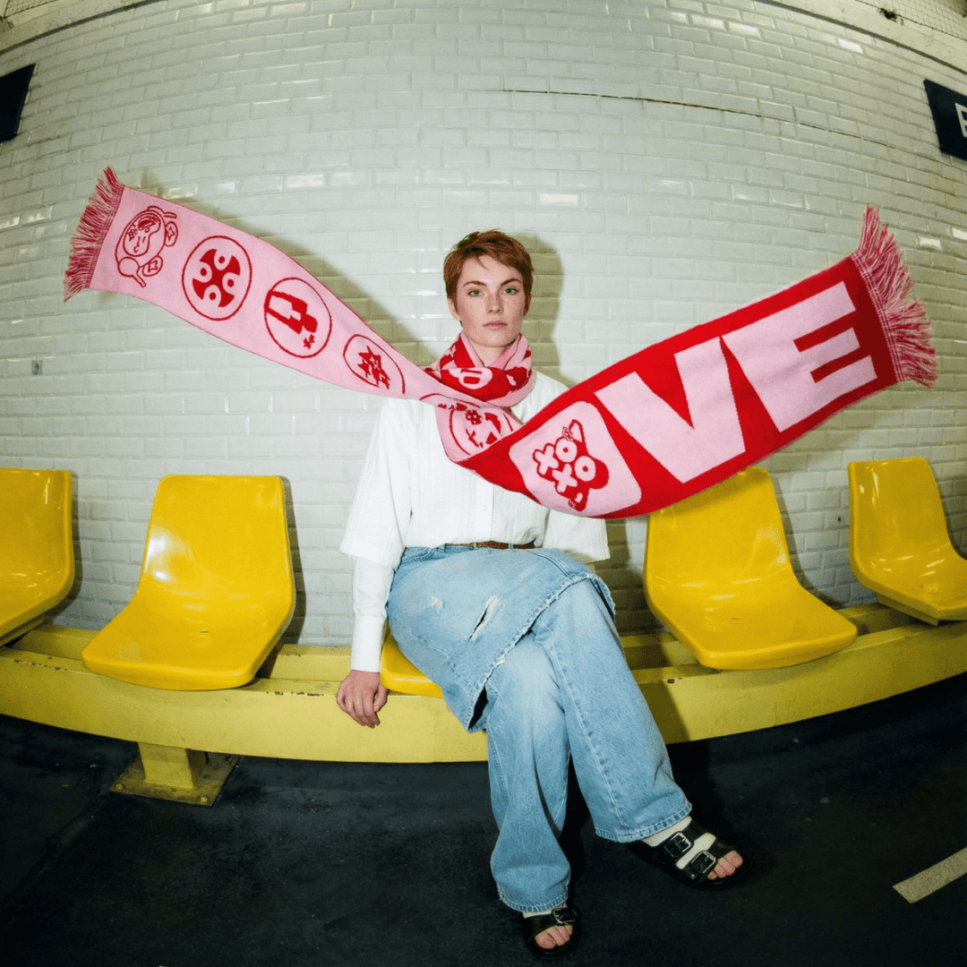 Choose between the statement SELF LOVE side or the playful icon-filled reverse. Whatever the mood, this scarf brings effortless attitude.